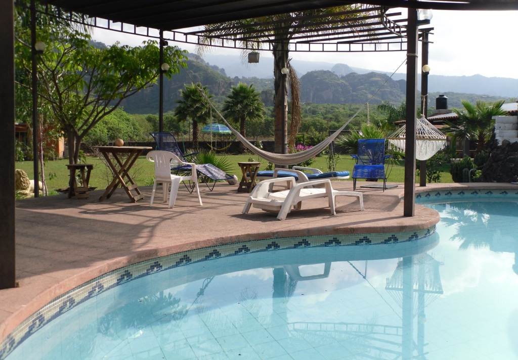 * Somos un lugar de alojamiento que brinda comodidad y descanso, además de un bonito espacio para disfrutar del clima en la alberca, jacuzzi o chapoteadero para los niños. Rodeado por la naturaleza, la belleza de sus Montañas y los paisajes que caracterizan al Pueblo Mágico de Tepoztlán, Morelos. Nuestro hospedaje ofrece precios accesibles y servicios personalizados. (RECOMENDACIONES). Habitaciones: - Sencilla (Cama matrimonial) 2 personas. - Doble (2 camas matrimoniales) 4 personas. - Amplia (Cama king size) 2 personas. - Bungalow (2 camas matrimoniales, cocineta y desayunador) 4 personas. Todas las habitaciones cuentan con baño completo, amenidades, pantalla con SKY y ventilador. - Alberca - Jacuzzi exterior - Chapoteadero Internet WIFI en esta área.
