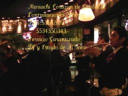 Desde el corazon del mariachi en Garibaldi méxico te ofrezco Música de mariachis para Eventos con Música de su Mariachi Corazon de Garibaldi y lo mejor en Canciones para Cantar y Bailar en sus Fiestas; Mariachis DF y EDO MÉXICOBuena presentación, ambientamos tu evento 7 músicos mariachis, versátiles, diversos géneros, servicio 24horas, ajusto grupo a tu presupuesto, TRATO Y PRECIO DIRECTO.Teléfono 53 58 26 7204455-39 73 31 6804455 13 38 30 48 Servicios y Contrataciones en/a domicilio, Oficinas, Escuelas, Colegios, Liceos, Institutos, Restaurantes, Salones de fiestas, Instituciones públicas y privadas, Discotecas, Bares, Iglesias, Hoteles, Carpas, Haciendas, Panteones, Auditorios, Teatros. Mariachis en DF Y EDO MEXICO EN Del Valle-La Condesa-La Roma-Polanco-Santa Fe-Clavería-Narvarte-Nápoles-Echegaray-Lomas Verdes-Garibaldi-Lindavista-San Ángel-Bosques de las Lomas-Real del Sur-Villa Coapa-Aeropuerto-Granjas México-Aragón-Álvaro Obregón-Benito Juárez-Cuauhtémoc-Magdalena Contreras-Miguel Hidalgo-Gustavo A. Madero-Xochimilco-Azcapotzalco-Tláhuac-Tlalpan-Iztacalco-Iztapalapa-VenustianoCarranza-Coyoácan-Cuajimalpa-MilpaAlta-Ajusco-Naucalpan-Coacalco-Tecámac-Huixquilucan-Ecatepec-Tultitlan,Ciudad López Mateos, Atizapán de Zaragoza